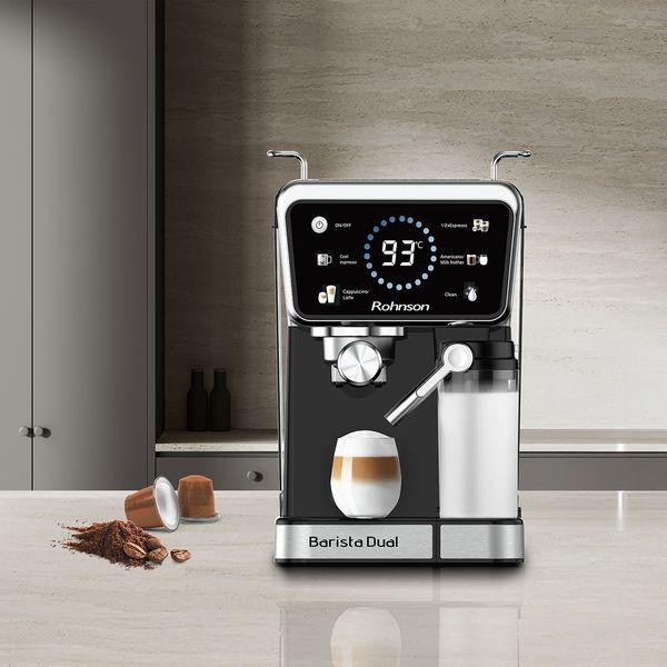 Ανακαλύψτε την απόλυτη εμπειρία καφέ με την Rohnson Barista Dual R-98082, την μηχανή espresso που φέρνει την τέχνη του barista στο χώρο σας – με ένα μόνο πάτημα.