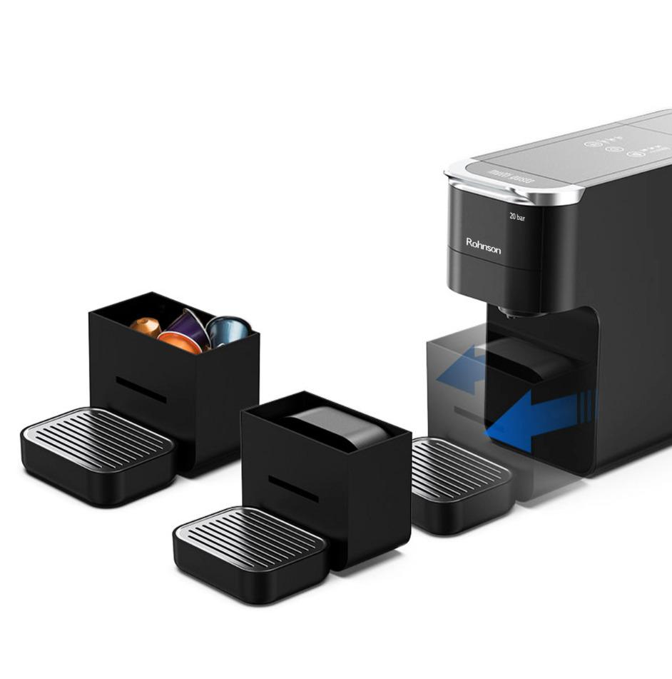 Απολαύστε κάθε στιγμή με την πολυχρηστική μηχανή espresso R-98055, Multi-Gusto 5 σε 1, σχεδιασμένη για να ικανοποιήσει όλες τις ανάγκες σας για καφέ! Με συμβατότητα με κάψουλες Nespresso, Dolce Gusto, Lavazza Blue, ESE Coffee Pod, αλλά και αλεσμένο καφέ, έχετε την ευελιξία να επιλέξετε τον αγαπημένο σας τύπο καφέ κάθε φορά.