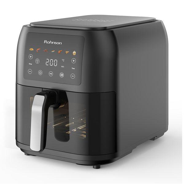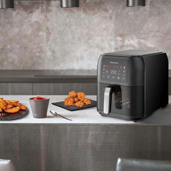 Η φριτέζα αέρα Rohnson R-2860 XL με ισχύ 1700W προσφέρει εύκολο και υγιεινό μαγείρεμα, χάρη στον κομψό και λεπτό σχεδιασμό της που εξοικονομεί χώρο στον πάγκο σου. Ο μεγάλος αποσπώμενος κάδος 8 λίτρων επιτρέπει την προετοιμασία άφθονων μερίδων για όλη την οικογένεια. Διαθέτει διάφανο διπλό τζάμι, ώστε να παρακολουθείς την πρόοδο του φαγητού χωρίς να διακόπτεις τη διαδικασία μαγειρέματος. Μια πρακτική και σύγχρονη επιλογή για κάθε κουζίνα.